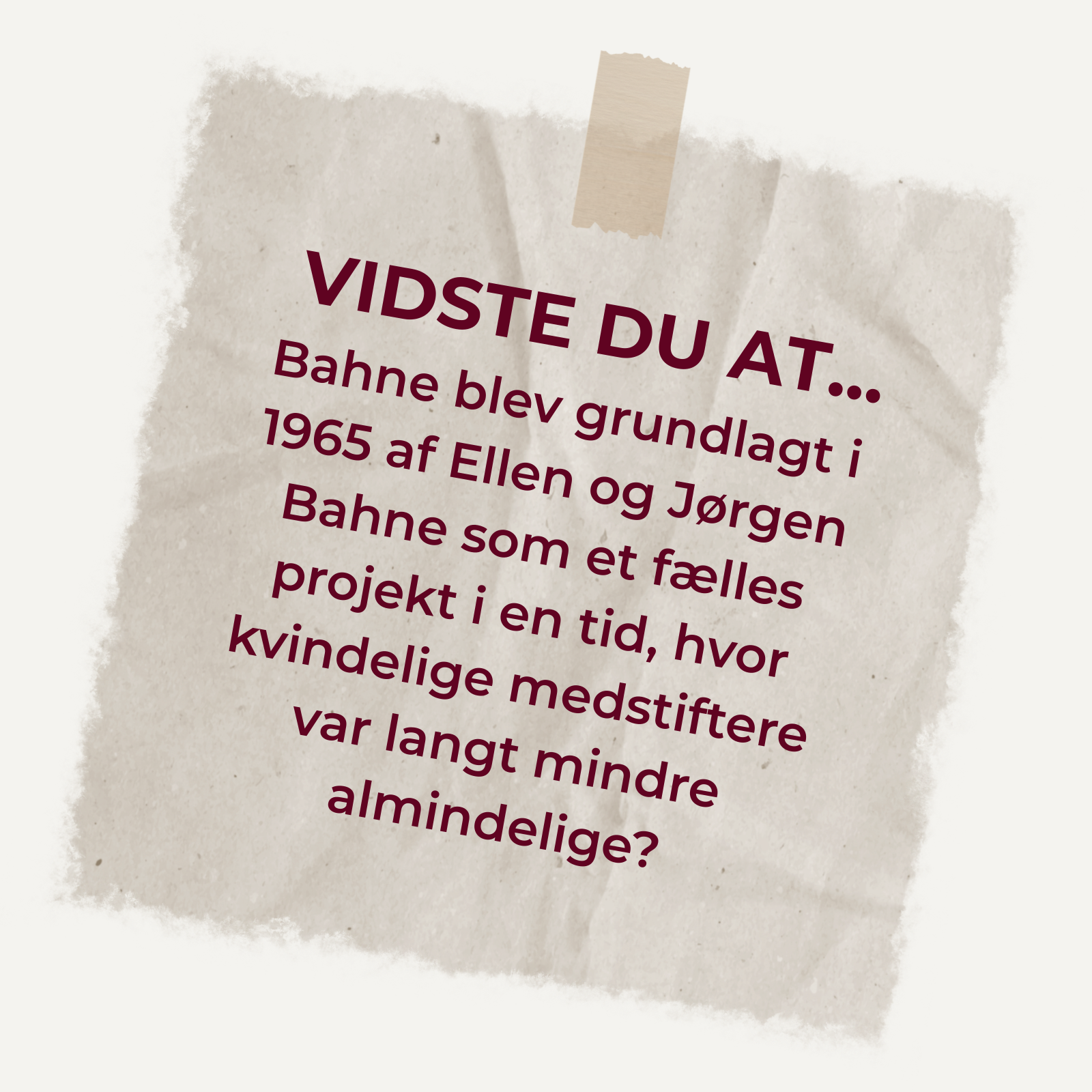 Kvinder har været en del af vores virksomhed siden begyndelsen i 1965 og spiller fortsat en central rolle i vores organisation og sortiment. Vi er stolte af at samarbejde med mange dygtige kvindelige iværksættere og af de kvinder, der hver dag er med til at drive Bahne fremad.