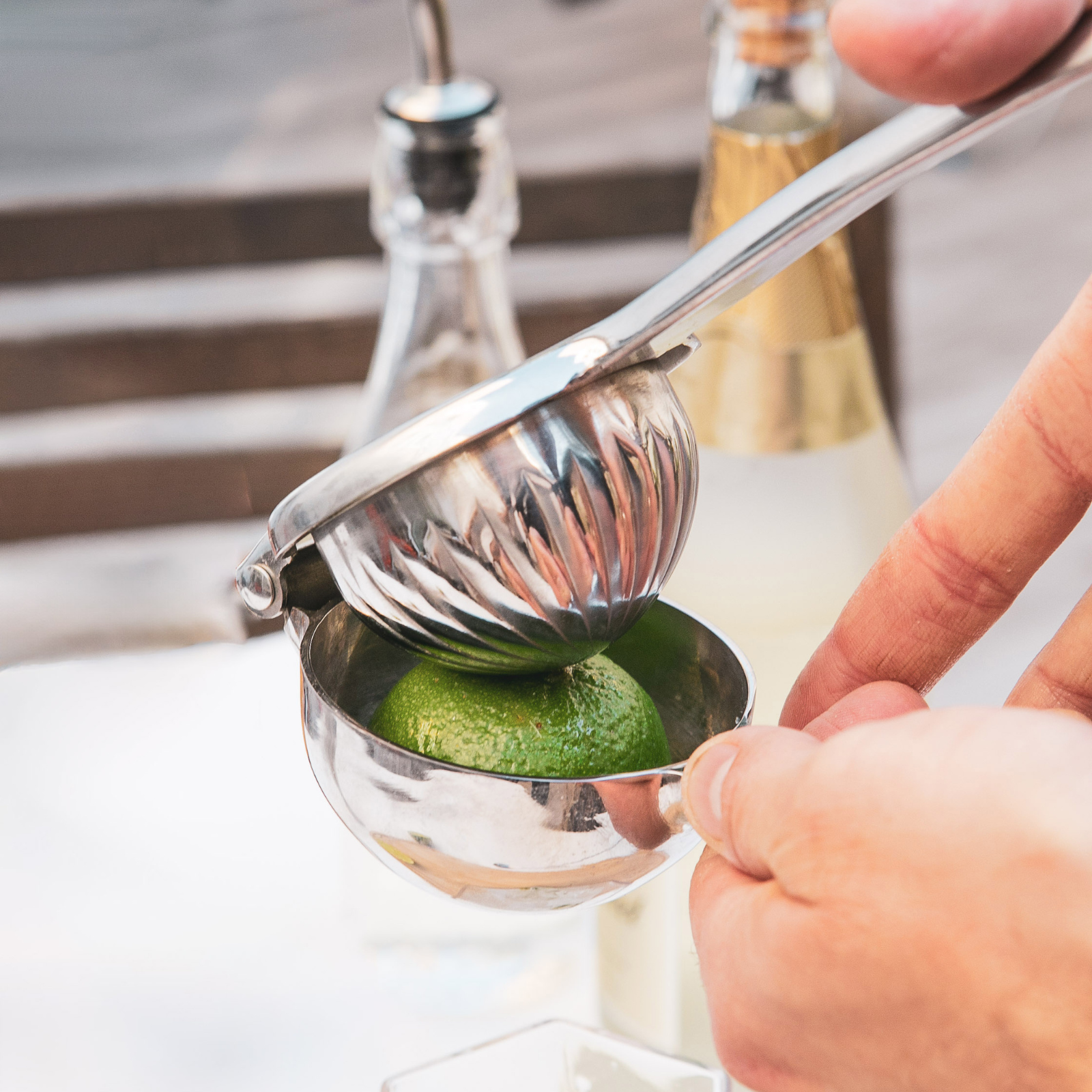 I en cocktailshaker fyldes limesaft, citronsaft og sukkerlage sammen med isterninger.