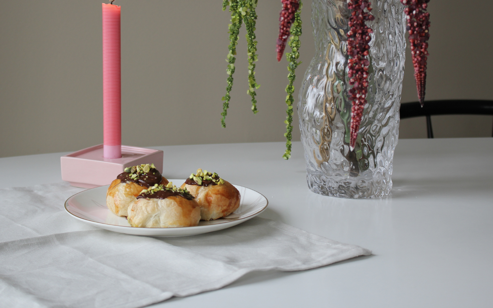 Disse hurtige fastelavnsboller kombinerer sprød croissantdej med en lækker pistacie-vaniljecreme og smeltet chokolade. Perfekte til dig, der elsker en god fastelavnsbolle!