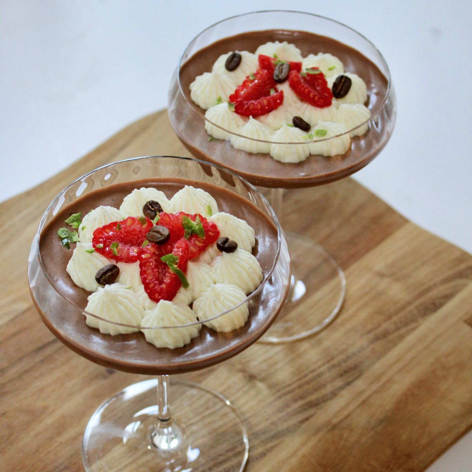 Denne lækre kaffedessert er både nem at lave og smuk at servere. Denne bløde mocha mousse er en perfekt kombination af lækker chokolade, god kaffe og friskhed fra bær og lime – perfekt sammen med en god kop kaffe.