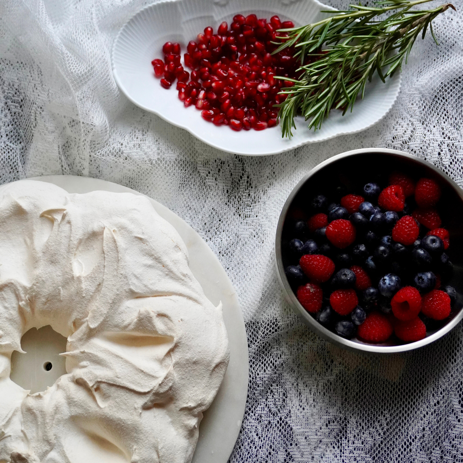 Denne pavlova-krans er en smuk og let dessert, der oser af juleglæde. Sprød marengs, blød flødeskum og friske bær samler sig i en festlig krans, der pynter bordet og er perfekt at dele med dem, du har kær.