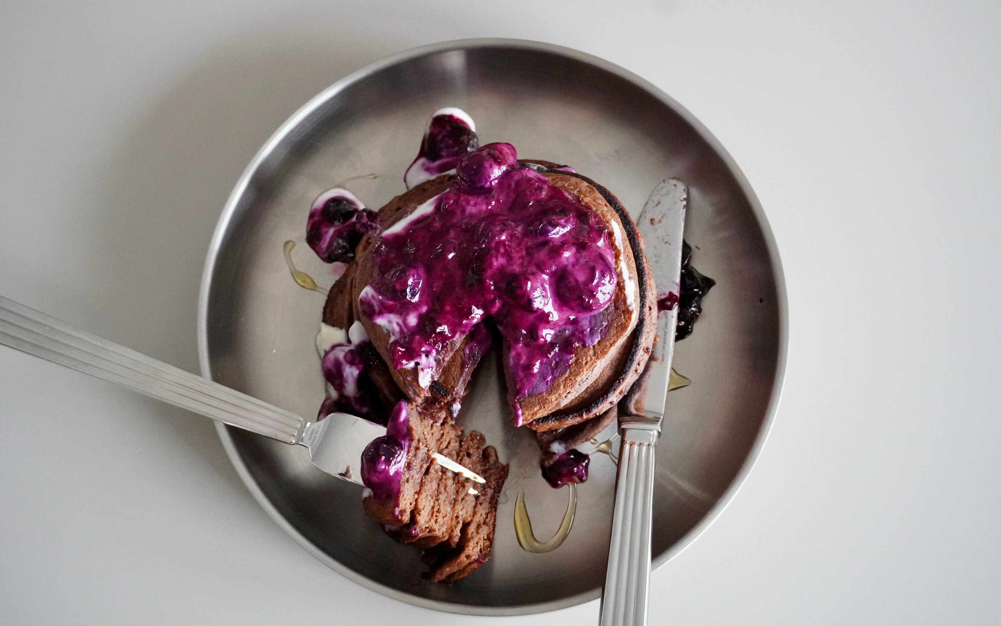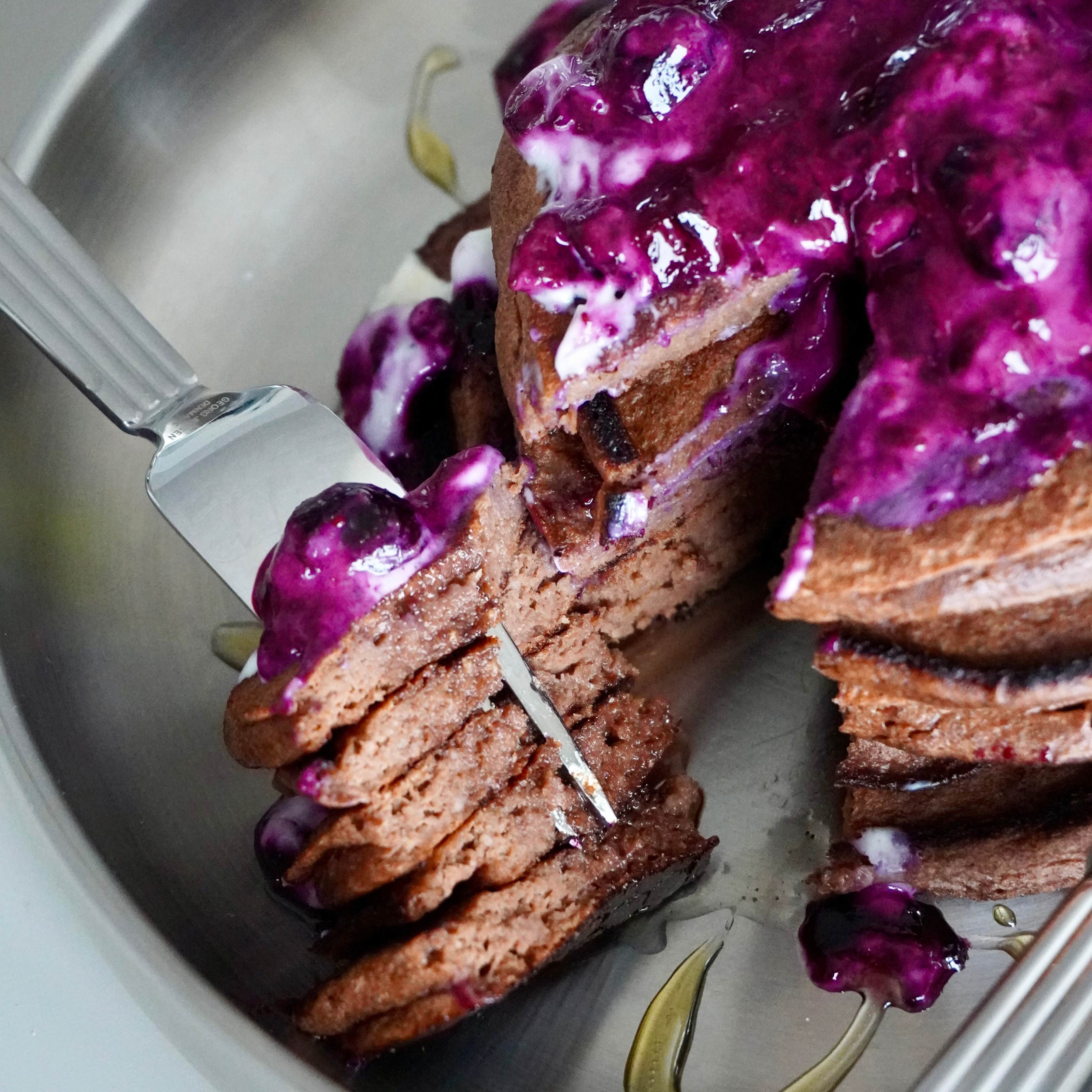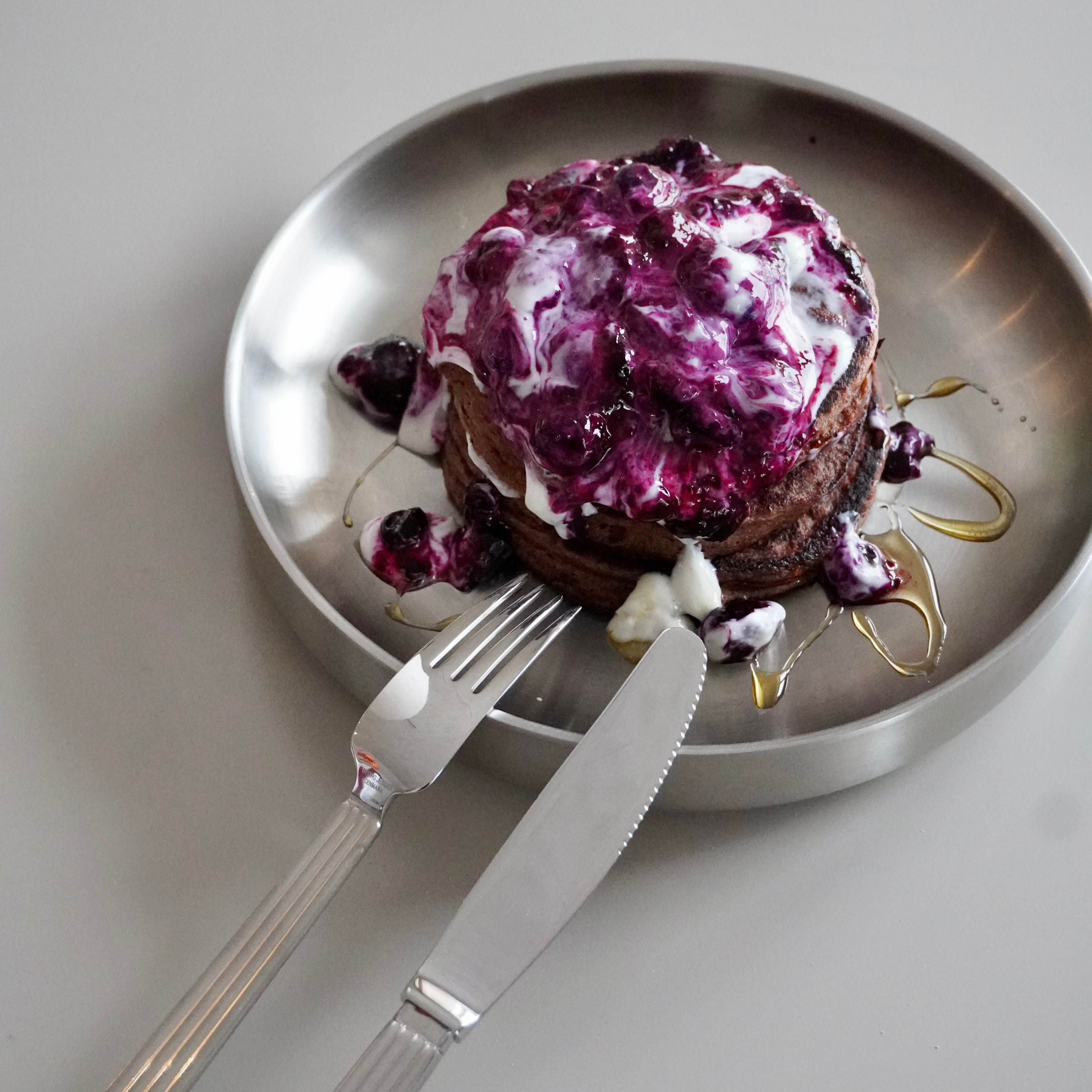 - Servér pandekagerne med din bærkompot og lidt skyr på toppen.