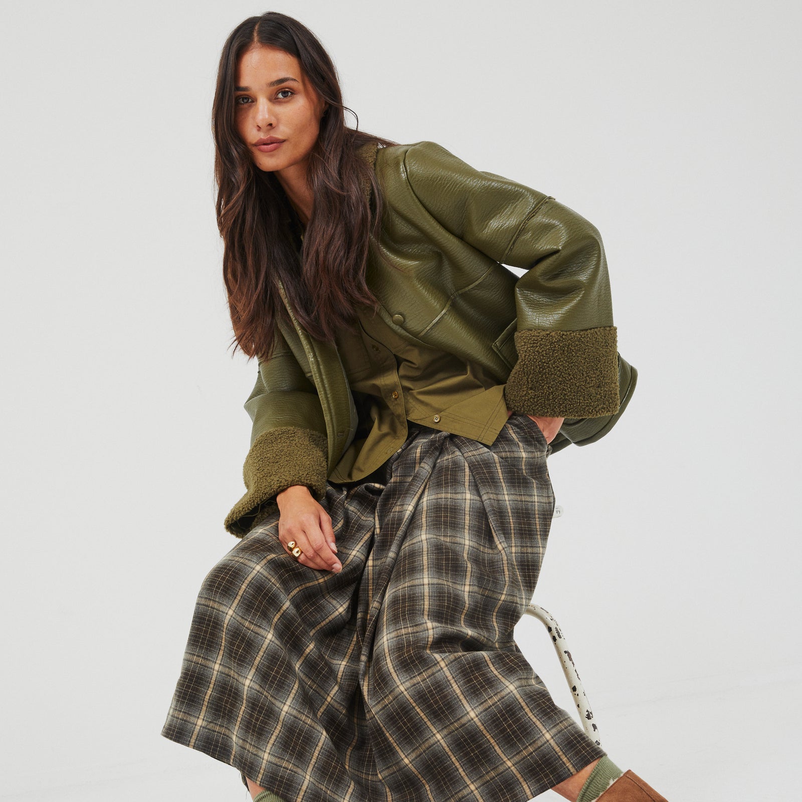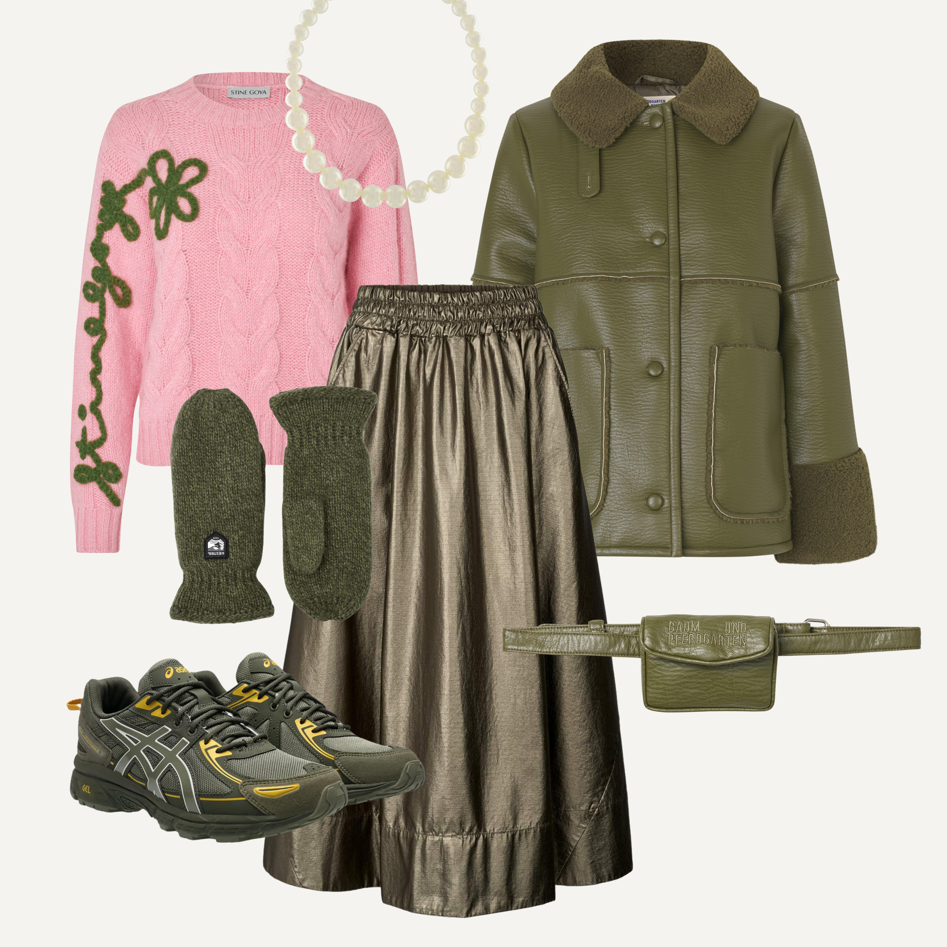 Olivengrøn er en farve, som vi ser mere og mere i efterårets gadebillede. Den rolige og naturtro nuance er tidløs og passer perfekt til efterårsgarderoben. Den skaber balance mellem det rå og feminine og er perfekt til at tone stærke farver ned eller til at løfte neutrale looks med et strejf af varme.