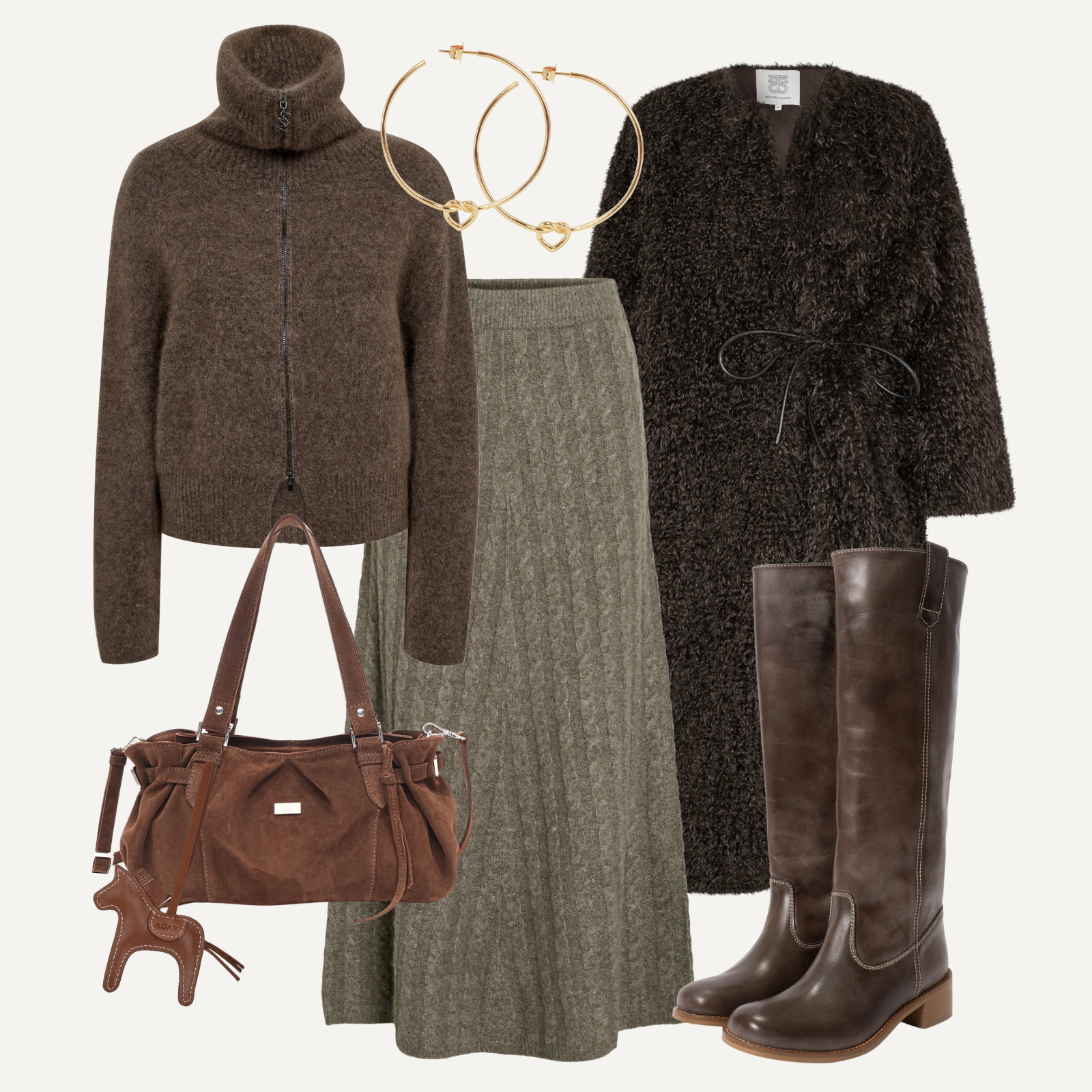 En moderne fortolkning af den klassiske jagtstil, hvor klassisk æstetik får et moderne twist. De brune og grønne nuancer skaber et roligt, naturinspireret udtryk med et strejf af britisk countryside. Perfekt til efterårets dage både i byen og i naturen.