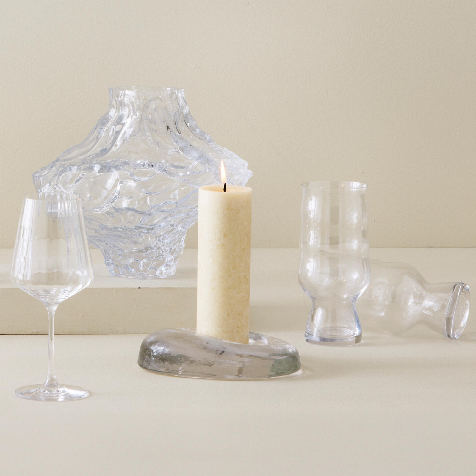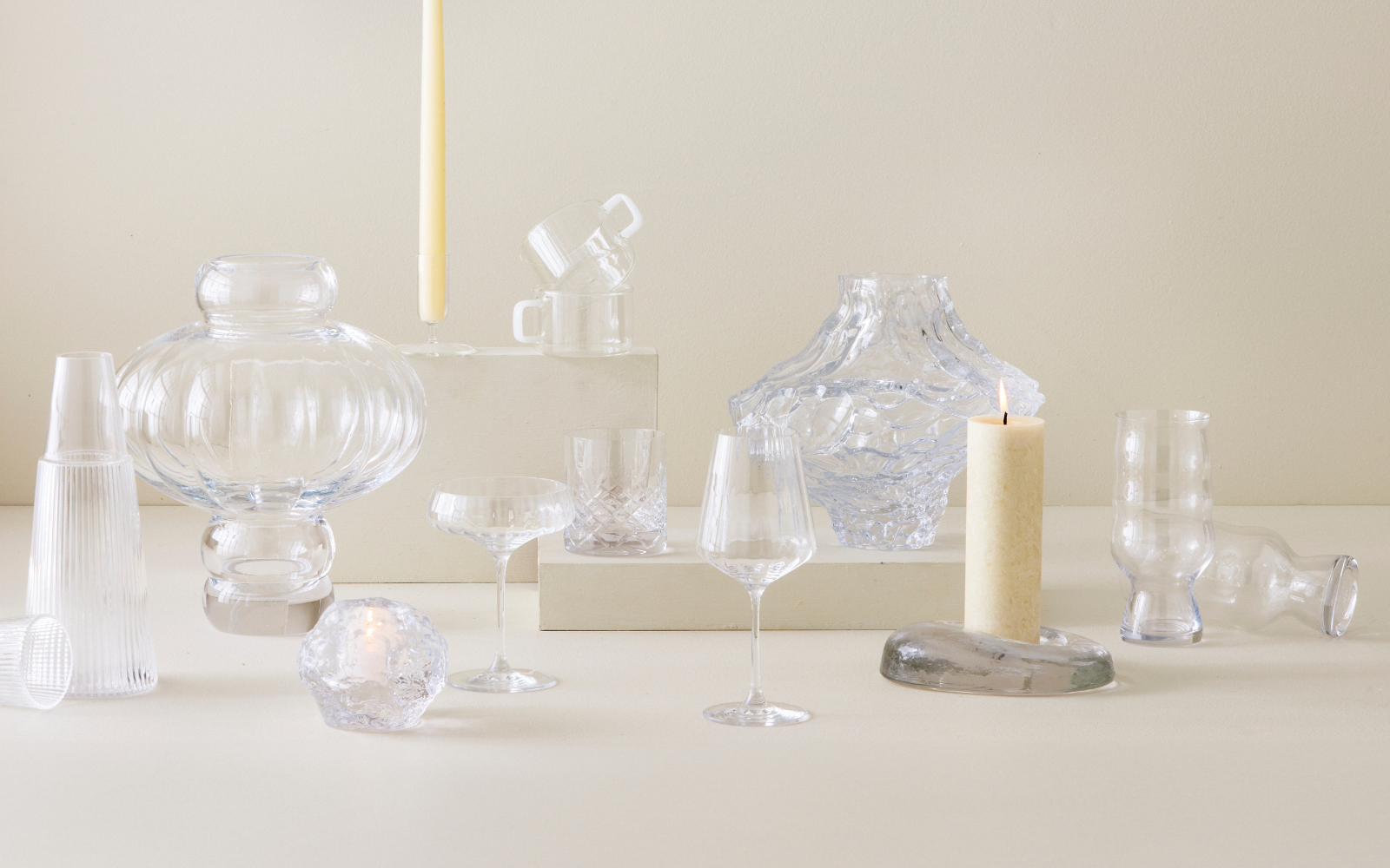 Tilfør dit hjem et personligt præg med glas i organiske og charmerende, skæve former. Hvad end det er til borddækningen, indretningen eller stemningen. Find din næste glas-favorit og skab et unikt udtryk.