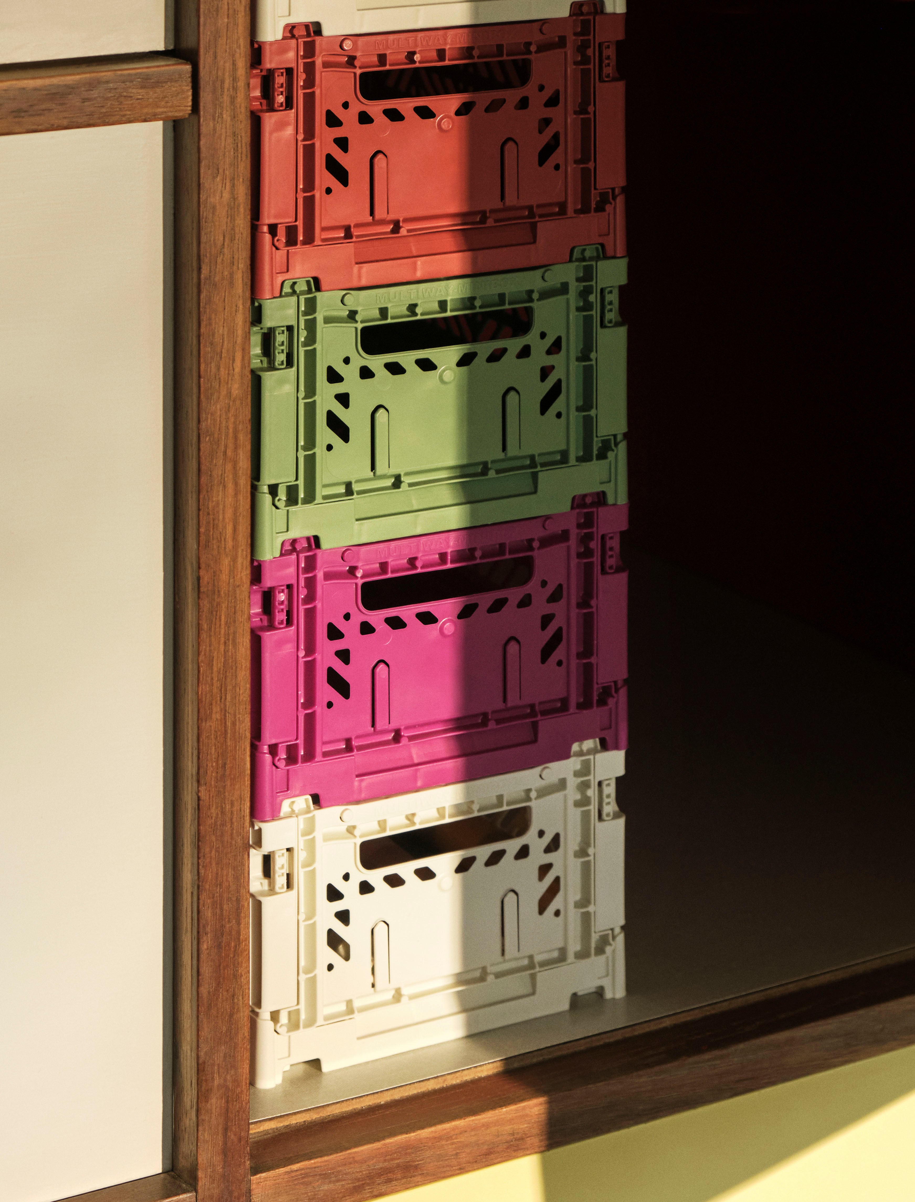 Opbevaring har aldrig været nemmere. Kasserne er lavet af 100 % genanvendt plastaffald i en række forskellige farver og størrelser, og kan stables oven på hinanden.
